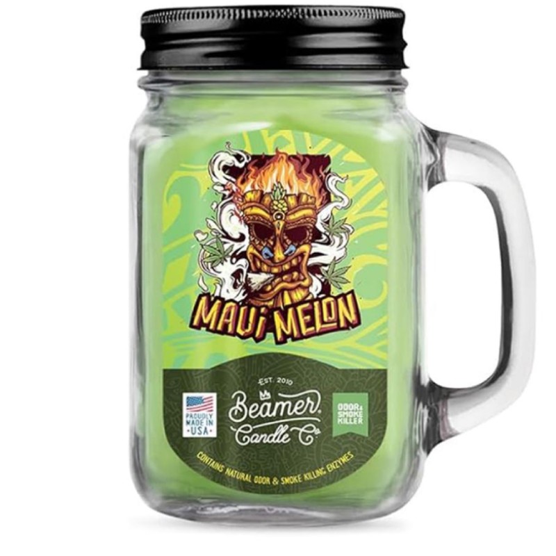 Large Beamer Candle Maui Melon, Tai Beamer Candle gamintojo produktas iš Smoke Killer linijos – žvakė neultalizuojanti kvapus. Kiekviena Beamer Candle žvakė pagaminta iš sojų vaško. Jos degimo laikas yra apie 90 valandų. Melionų su gaiviomis agurko natomis kvapo žvakė. Pagaminta Jungtinėse Amerikos Valstijose.