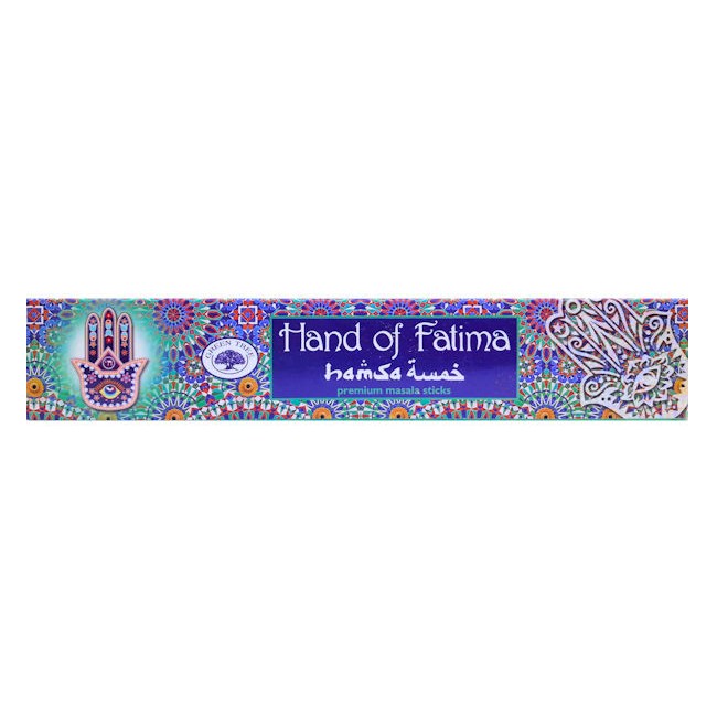 Green Tree Hand of Fatima rankų darbo natūralūs smilkalai iš Indijos. Pakuotėje yra 15 gramų tradicinės formos smilkalų.