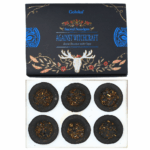 Smilkstantis kauburys Goloka Against Witchcraft pagamintas iš žolelių, kvapiųjų dervų ir medžio anglies. Pakuotėje 6 vnt. Kilmės šalis – Indija.