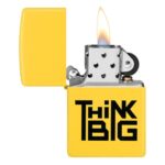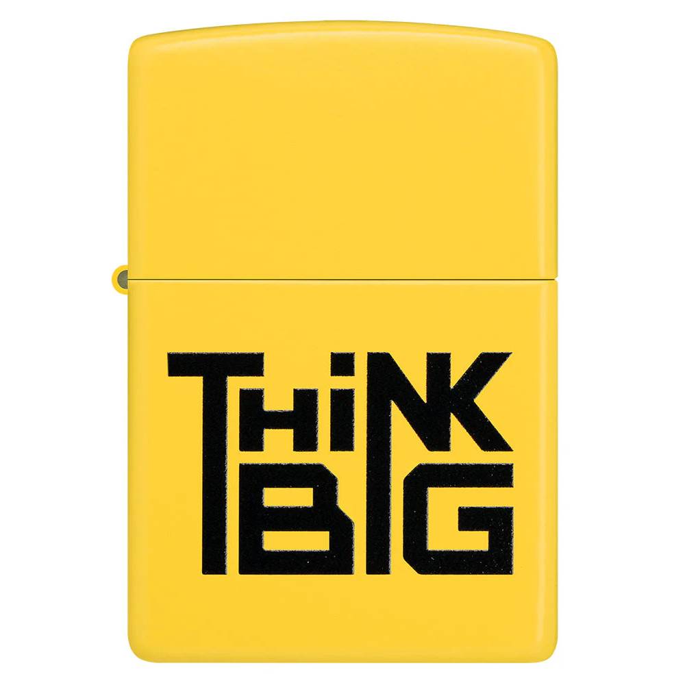 Zippo Think Big žiebtuvėlis yra ryškiai geltonas, linksmas. Svarbu: Zippo Žiebtuvėliui pildyti turėtų būti naudojami tik originalūs komponentai t.y. Zippo kurasZippo akmenėliai ir Zippo knatas.